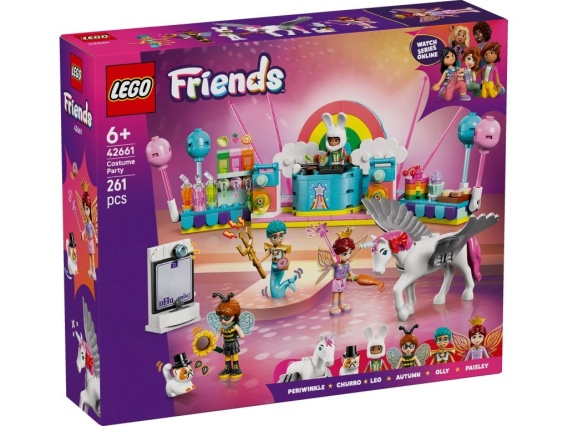 - Cztery minilaleczki i dwie figurki zwierząt LEGO® — dołącz do Autumn, Olly’ego, Leo i Paisley oraz ich zwierzaków przebranych za trzmiela, trytona, magika, króliczka, wróżkę i jednorożca.