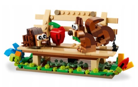 W ramach tego zestawu LEGO 3 w 1 dzieci mogą wybierać spośród trzech różnych scen ze zwierzętami do zbudowania . Mogą zbudować budkę dla ptaków z pięcioma ptakami, przebudować ją i stworzyć jeża i wiewiórkę siedzących na ławce w parku lub ul z czterema pszczołami i plastrem miodu.
