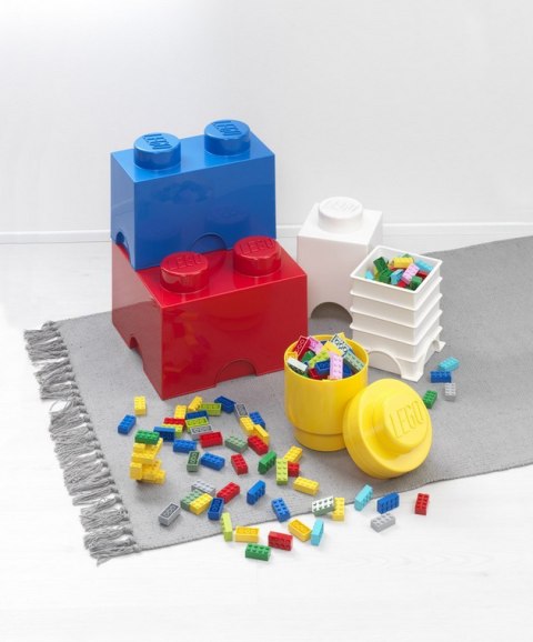 Duży kwadratowy pojemnik w kształcie klasycznego klocka LEGO® w radosny sposób pomaga uporządkować dziecięcy pokój.