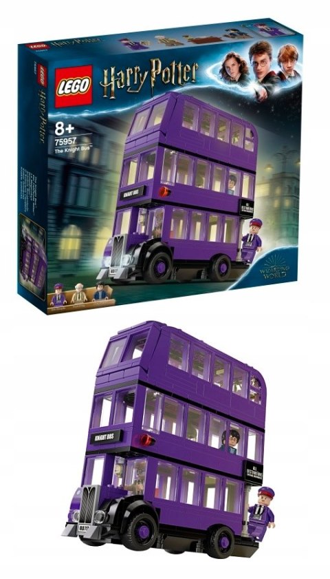 W zestawie LEGO® Harry Potter™ 75957 Błędny Rycerz™ młodzi czarodzieje i czarownice mogą przeżyć zaczarowaną podróż. Wsiądź do fioletowego dwupiętrowego autobusu i przygotuj się na zwariowaną przejażdżkę. Boczny panel na zawiasach zapewnia łatwy dostęp do wnętrza, a zdejmowany dach pozwala zajrzeć na górne piętro tego magicznego pojazdu, który aż pęka w szwach od możliwości zabawy. Gdy załadujesz do środka kufer Harry'ego, lepiej mocno się czegoś złap — autobus zaraz ruszy, w szaleńczym tempie ścinając zakręty i przeskakując nad wybojami. Dzieciom z pewnością spodoba się łóżko, które ślizga się po podłodze tam i z powrotem, oraz kołyszący się pod sufitem żyrandol. Zestaw zawiera trzy minifigurki.